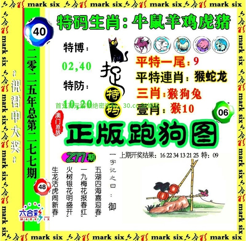 277期九肖 | 马兔猴牛龙猪羊狗虎 | 开:虎16 |