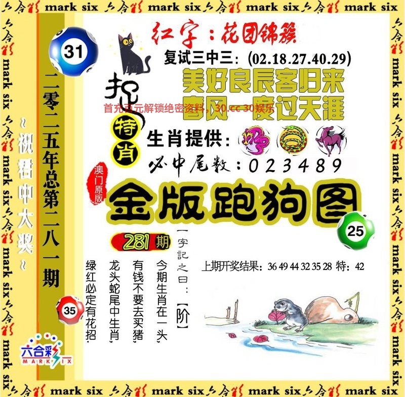 280期二肖 | 鼠猪 | 开:鼠42 |